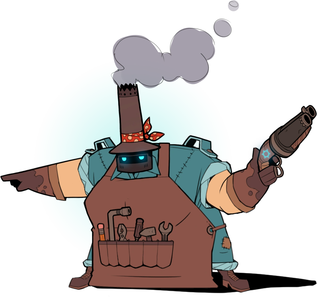 In all phases, Isa uses her Wallace, making 2 shots from it. If player close to her, she attacks with her tool. At beginning of every phase, she uses Wallace to spawn Mechanas to help her.